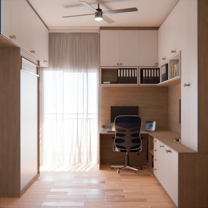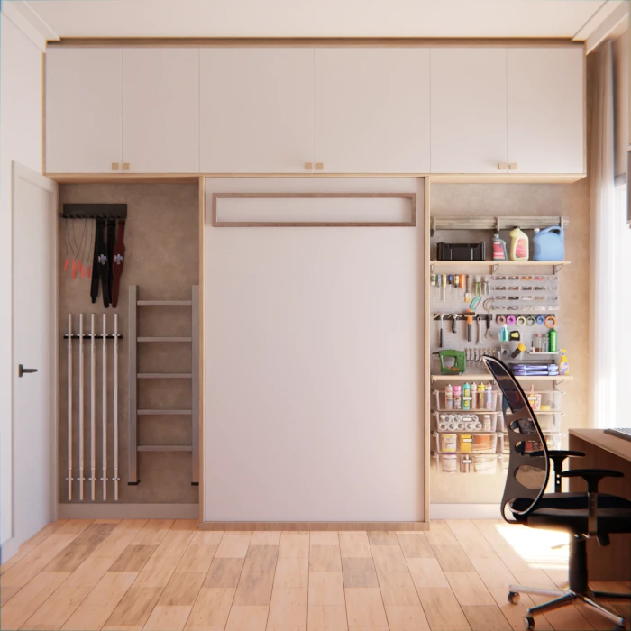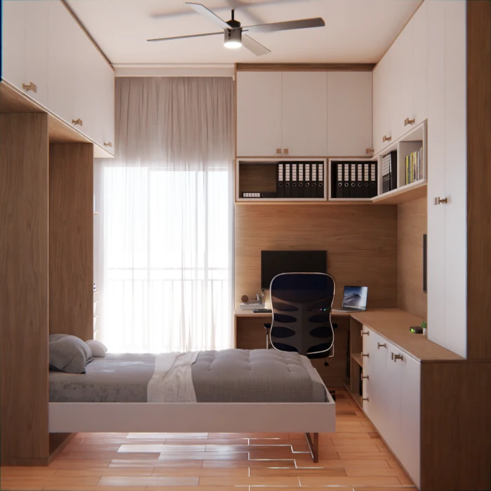 Ambiente multifuncional com ótimo aproveitamento do espaço e design inteligente